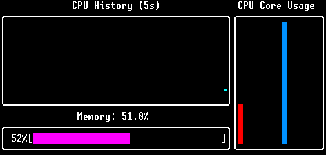Dashboard Live system monitoring dashboard showing CPU and memory usage. |