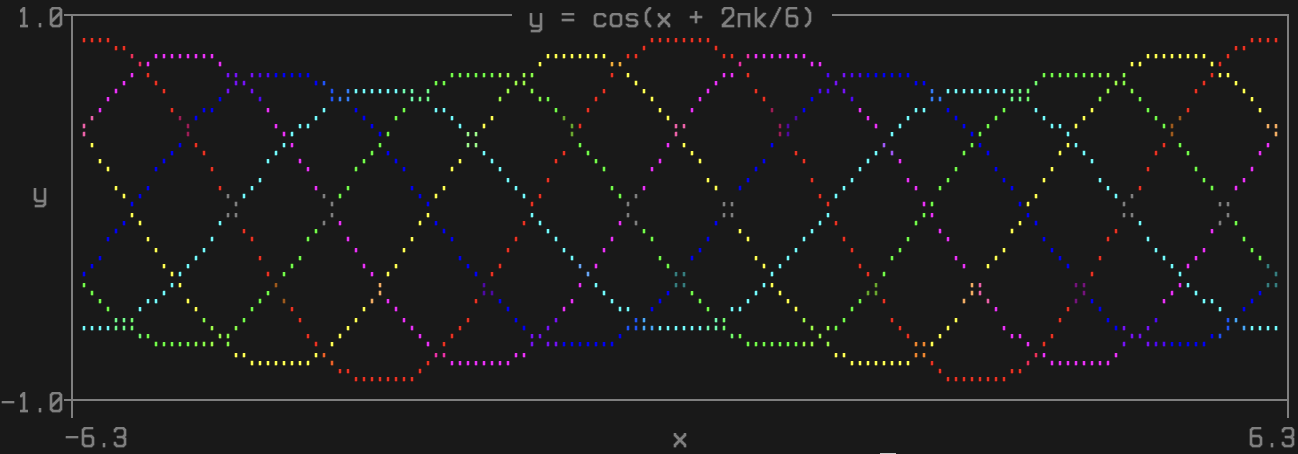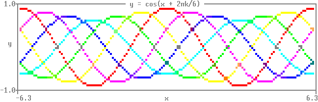 title=" y = cos(x + 2πk/6) ",